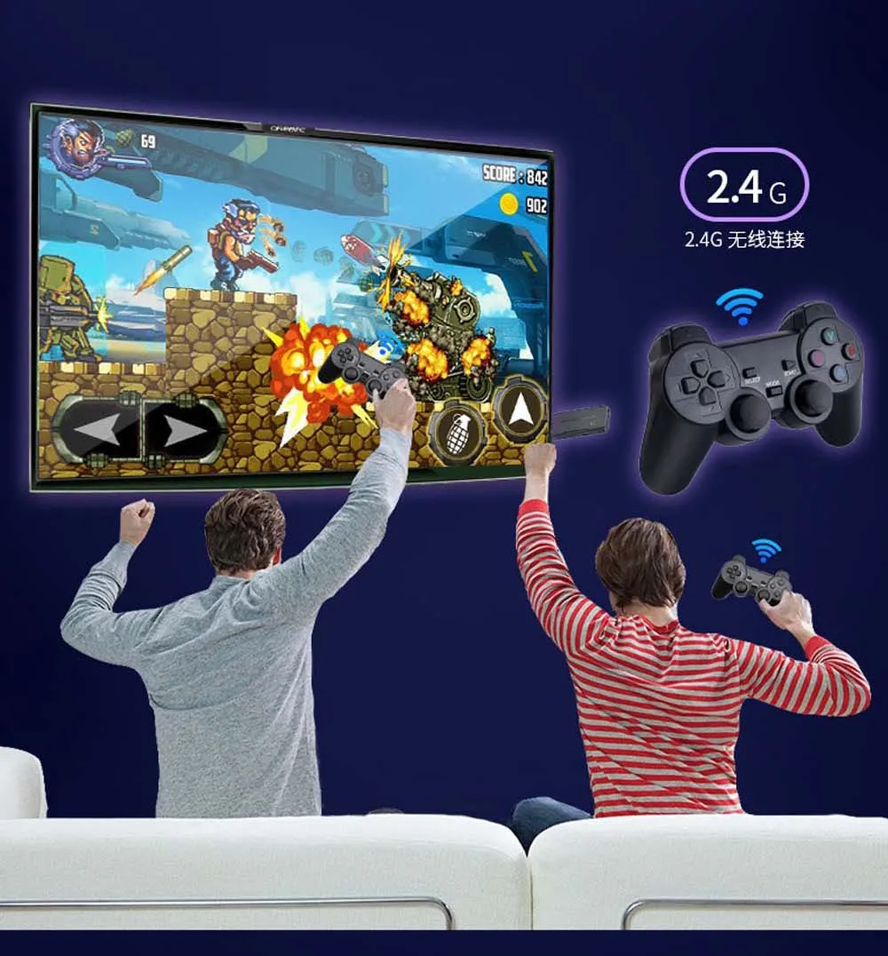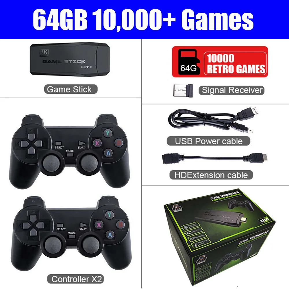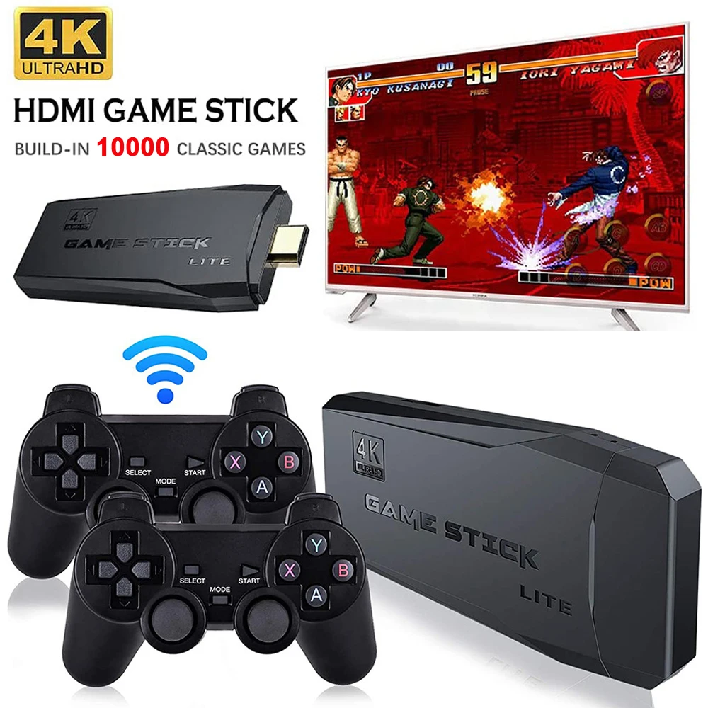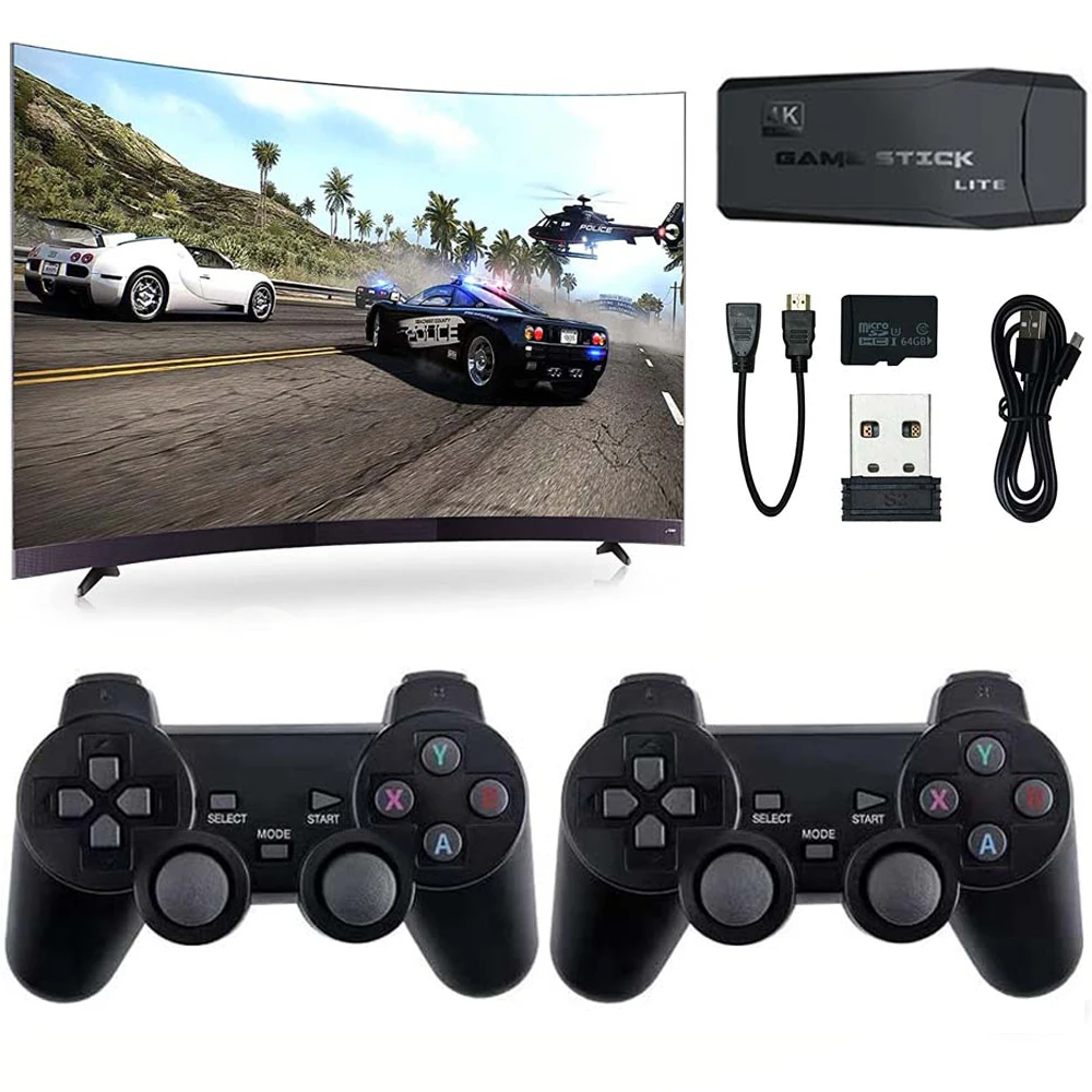 Console de videogame 2.4g duplo controlador sem fio game stick 4k jogos de 10000 64 32gb jogos retro para ps1/gba boy kid presente de natal