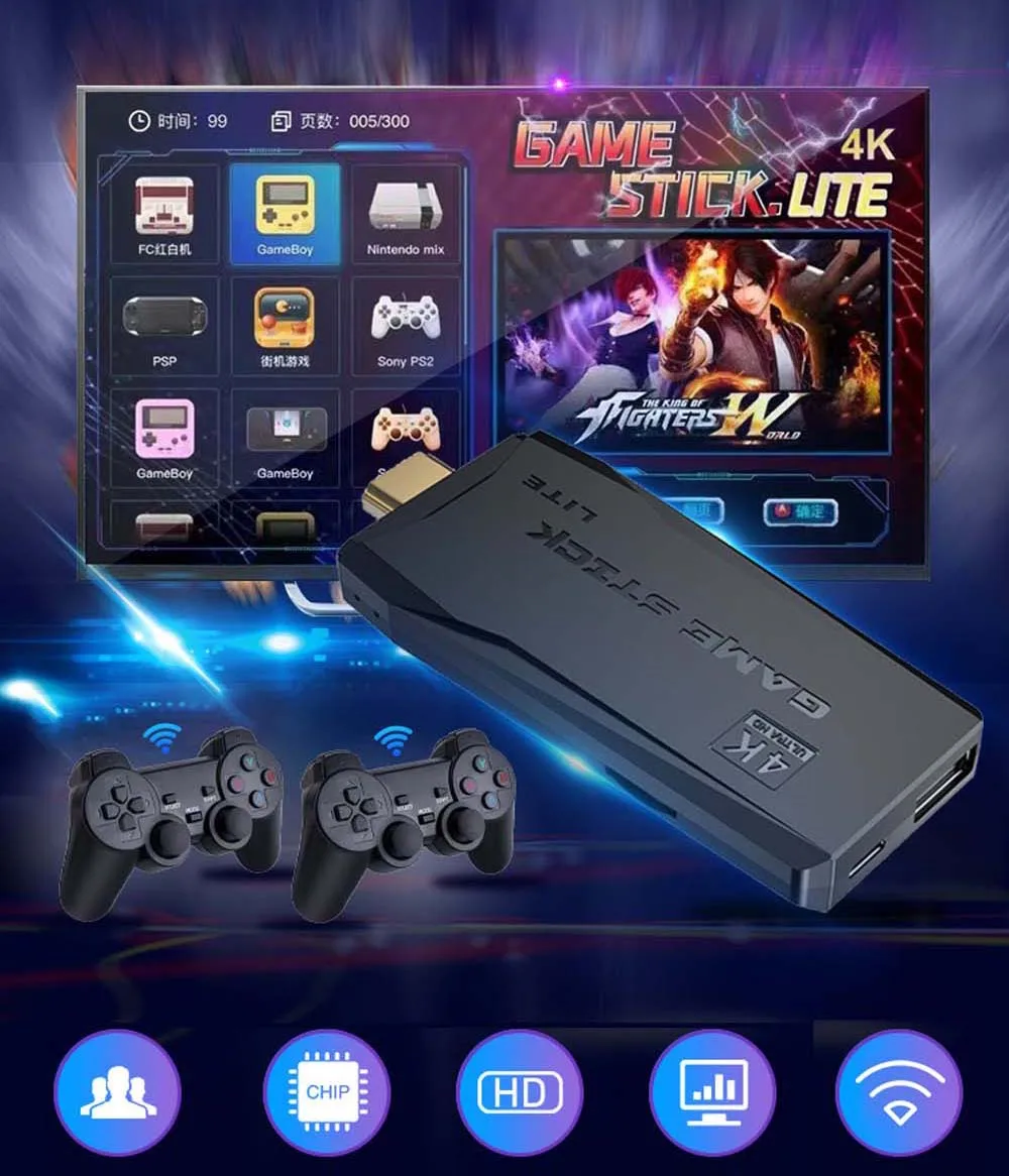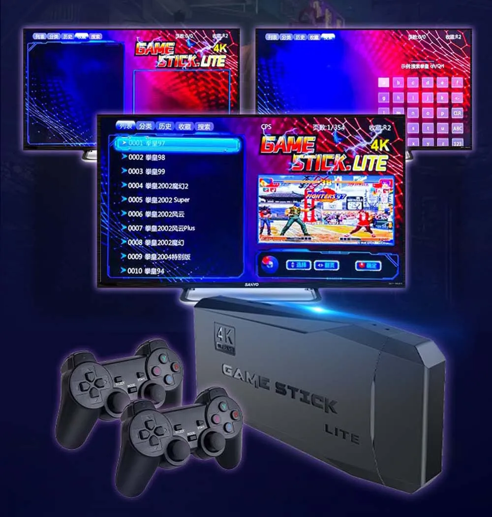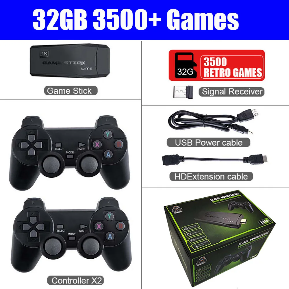 Console de videogame 2.4g duplo controlador sem fio game stick 4k jogos de 10000 64 32gb jogos retro para ps1/gba boy kid presente de natal