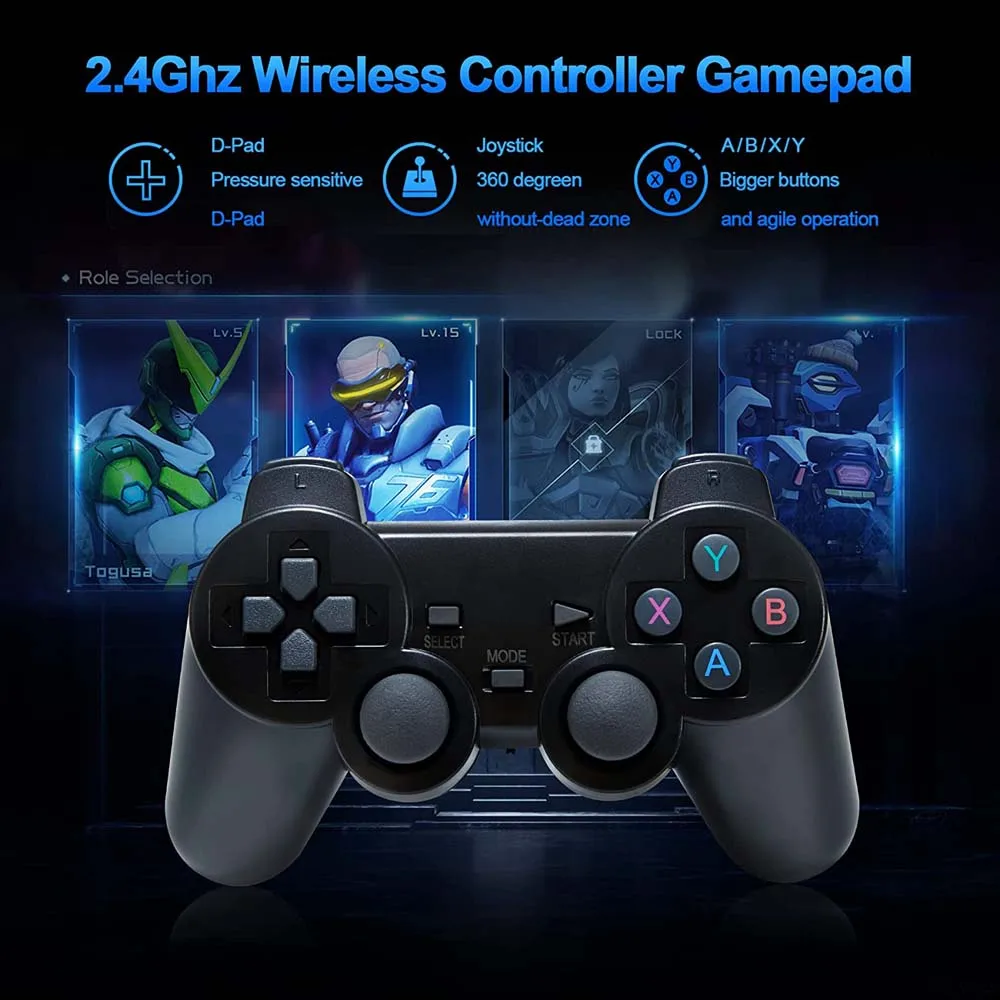 O gamepad sem fio de 2.4g é sensível e não tem atraso, permitindo que você fique longe dos grilhões e da tela, a interface de operação é simples, e você pode arquivar após a interrupção e entrar no jogo a qualquer momento.